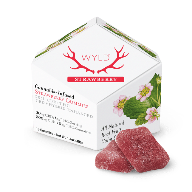 Wyld Strawberry gummies offer the relaxing effects of CBD enhanced with a gentle dose of THC. Feel a sense of ease.