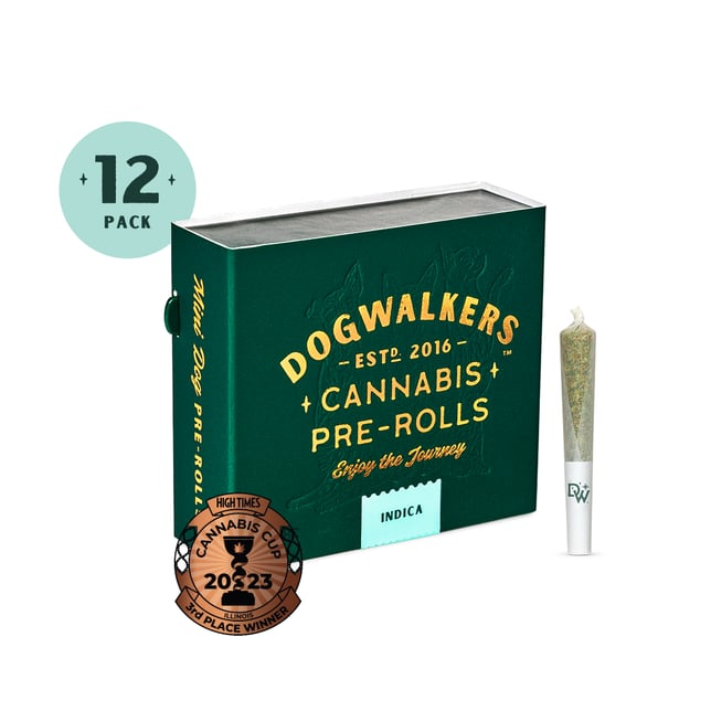 The dog pack just got bigger with Dogwalkers 12 pack pre-rolls. Our “SIT” Mini Dog 12 pack pre-rolls offer a total of 4.2g of indica-leaning flower. Conveniently packaged in an on-the-go tin, each .35g miniature pre-roll (12 total) is always crafted with strain-specific premium flower; never shake, stems or seeds. Dogwalkers donates a portion of proceeds from every product sold to deserving animal shelters across the country.