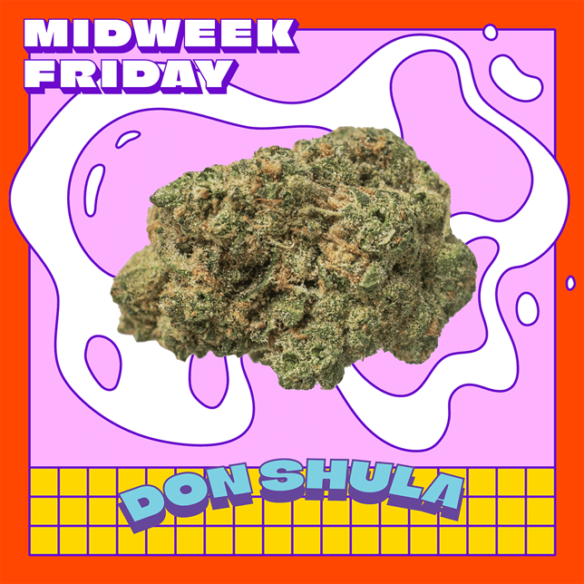 Don Shula is an exceptional sativa dominant hybrid that impresses with its unique blend of robust cheese notes and a funky, earthy essence. This strain delights the palate with a complex flavor profile, balancing rich, savory undertones with subtle hints of sweetness for a truly memorable experience. The primary terpenes—Myrcene, Caryophyllene, and Limonene—contribute to its distinct character. Myrcene imparts a relaxing quality, Caryophyllene adds depth and a hint of spice, while Limonene infuses a bright, citrusy zest, enhancing both aroma and effects.Users can expect a focused, calm, and uplifted state of mind, making Don Shula perfect for social gatherings, creative pursuits, or unwinding after a long day. With its high potency offering a profound, long-lasting experience, this strain encourages clarity and productivity while maintaining a soothing vibe. Ideal for those in search of motivation with a touch of relaxation.