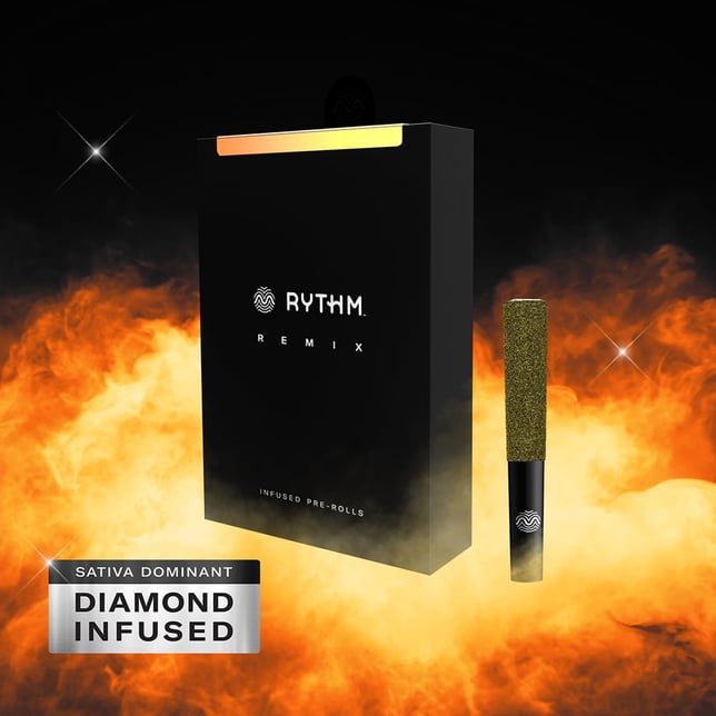 RYTHM Remix pre-rolls are built for those who want maximum potency and bold flavor in every session. Made with RYTHM Flower, each pre-roll is infused with live THCa diamonds for amped up potency, coated in kief for a double infusion, and fine-tuned with 100% natural terpenes for intense, fruit-forward flavor.