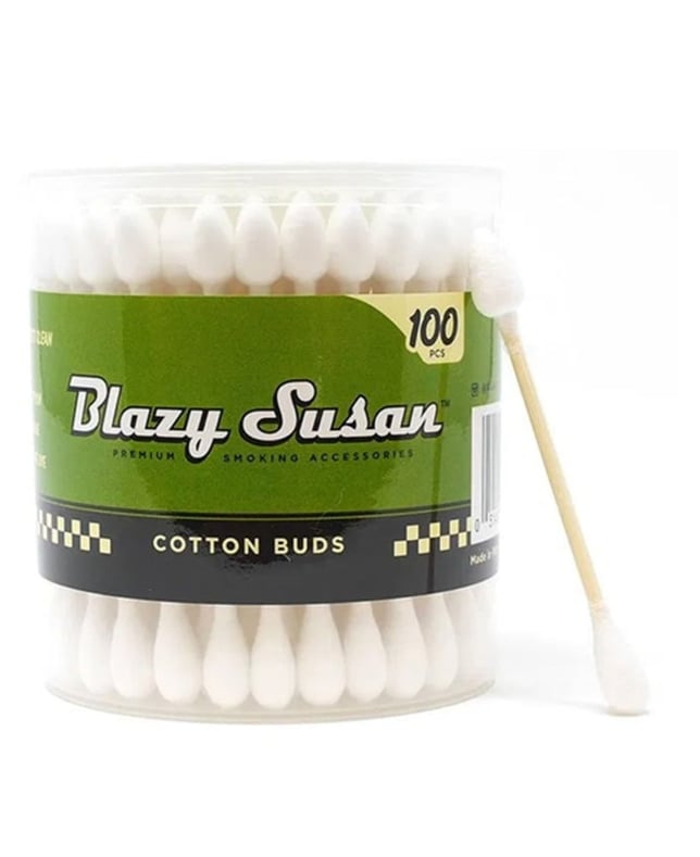 100-count triple-wrapped cotton buds colored with food-safe dye for clean, precise concentrate maintenance in White.