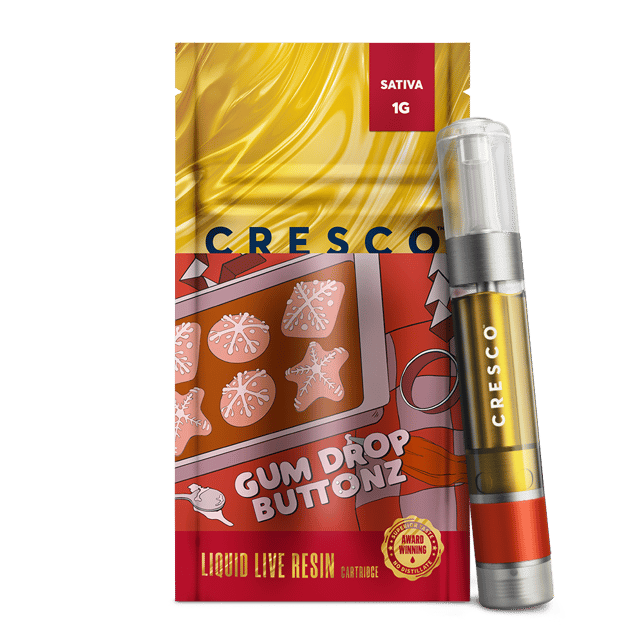 Gum Drop Buttonz crosses Lemon Bean with Outer Space for classic holiday flavors like sugary sweetness and red berries. You may feel the cheer with top terpenes Myrcene and Limonene, with potential benefits like physical relief and an uplifted mood, while staying nice and relaxed. Be sure to check out the rest of the limited-run Holiday Liquid Live Resin collection.