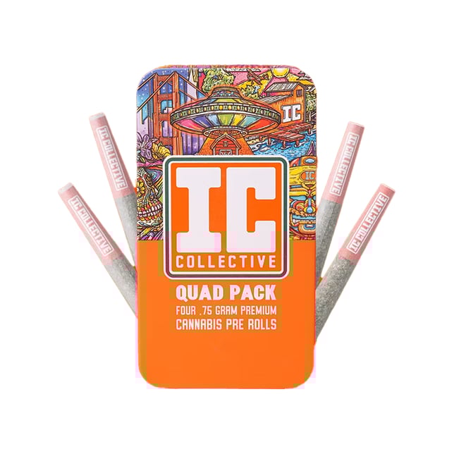 FOR THOSE TIMES WHEN ONE IS NOT ENOUGH, WE'VE COT YOU COVERED WITH OUR PRE-ROLL QUAD PACK. INTENDED TO KEEP YOU ON TOP OF YOUR SMOKE-GAME, FOUR .75G PRE-ROLLS COME IN A DURABLE TIN PACKAGE WITH AN AIR-TIGHT INNER-SLEEVE TO KEEP THINGS FRESH. OFFERING THE SAME QUALITY AS OUR SINGLE PRE-ROLL, QUAD PACK JOINTS ARE MADE WITH ALL FLOWER, NO TRIM, AND ARE STRAIN SPECIFIC. THIS EFFICIENT PACKAGE WAS DESIGNED TO MOVE SAFELY THROUGH THE DAY WITH YOU.