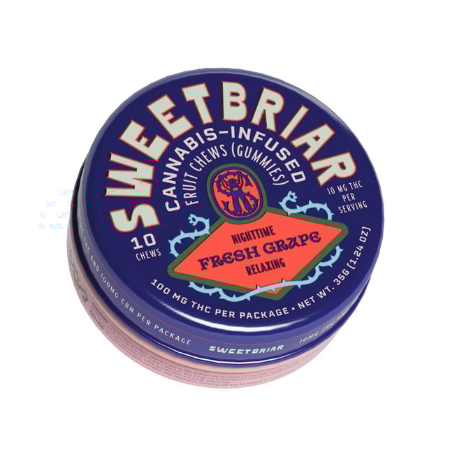 Unwind the right way with SWEETBRIAR Nighttime Fresh Grape chews — a smooth, juicy grape flavor crafted for evening relaxation and restful vibes. Designed for after-hours use, these fast-acting gummies help ease the mind and body so you can settle in and recharge.
