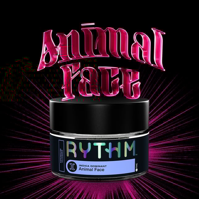 RYTHM Premium Flower offers a variety of expertly cultivated and meticulously cured strains with optimal potencies, lush aromas, and rich flavors. | [orig[ Face Off OG x Animal Mints] is a potent indica-leaning strain with a complex flavor profile of sweet mint, citrus, and nuts with hints of pine and diesel.